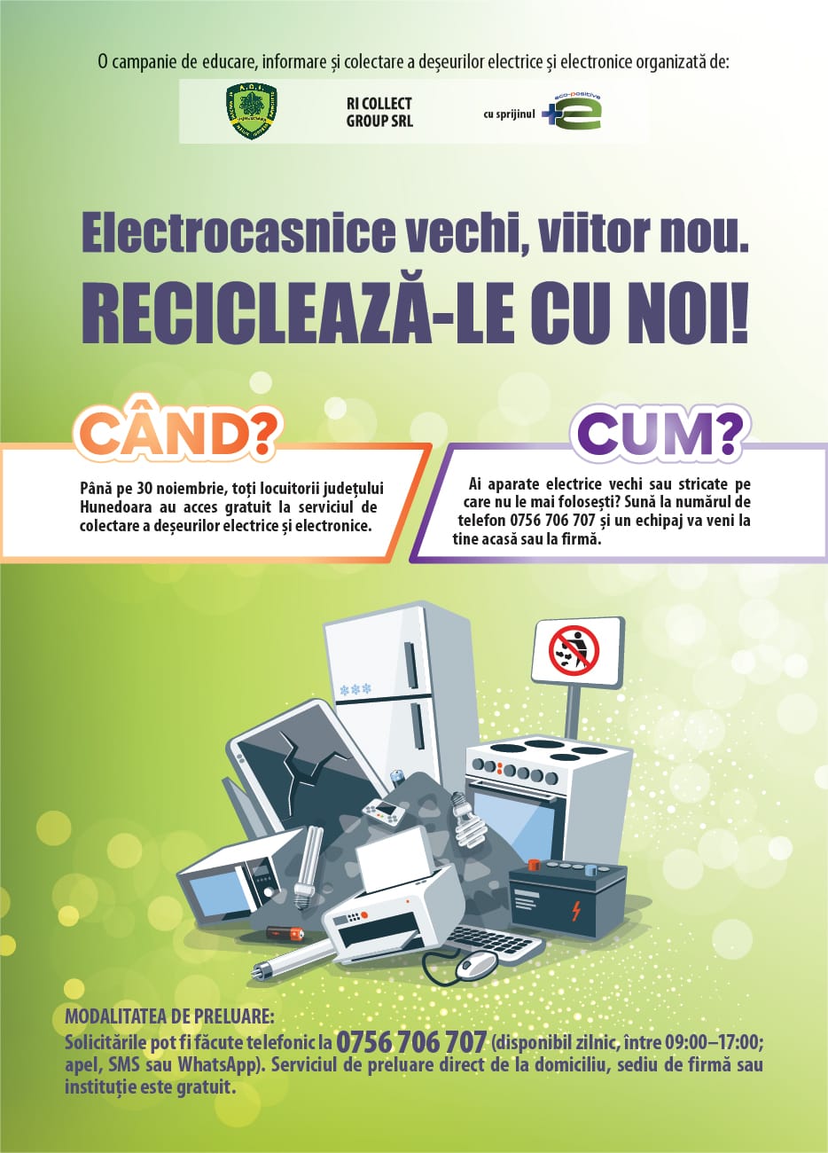 Serviciul face parte dintr-o campanie de educare, informare și colectare a deșeurilor electrice și electronice (DEEE), organizată de A.D.I. S.I.G.D. Hunedoara în parteneriat cu RI Collect Group SRL.